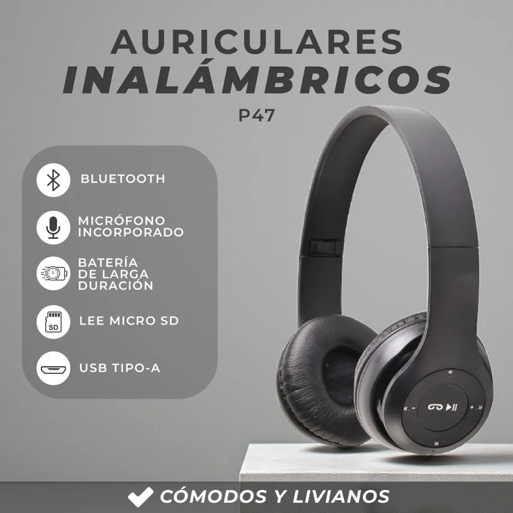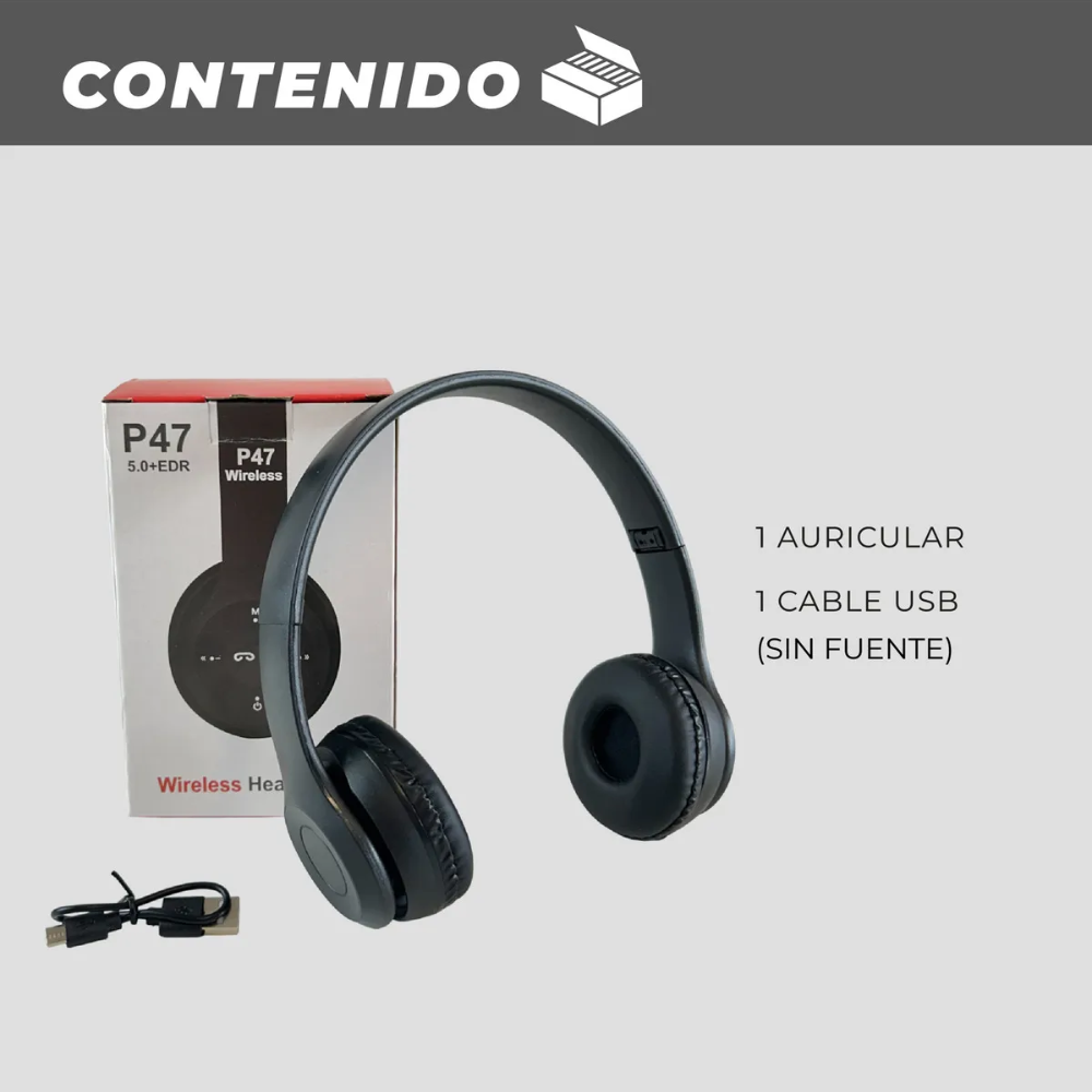 - Este auricular es compatible con iOS, Android y Windows. Cuenta con micrófono incorporado, Bluetooth, micro-SD. Auriculares P47 Bluetooth + manos libres + Radio + SD